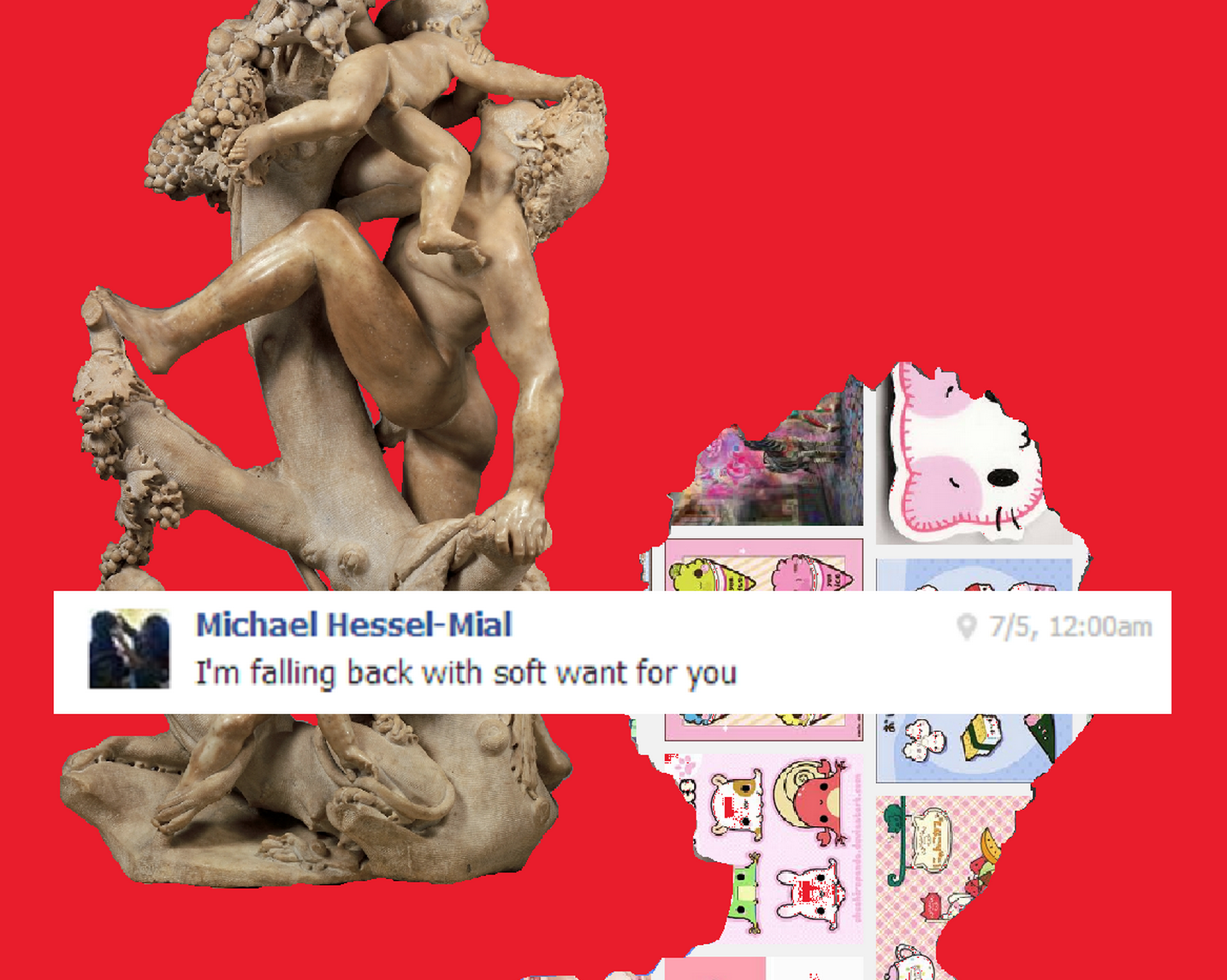 Dante’s Vita Nuova was a part-prose, part-verse treatise on love, notable for being written in Italian rather than Latin, which was the literary language at the time. Hessel-Mial’s Vita Nuova II is also a genre-bending, multi-modal embrace of a fresh vernacular, combining his lyric voice—infused with the registers of texting and hip hop—with autobiographical confessional writing, essays on the nature of media and desire, paeans to “marxist anime teens,” selfies and snapchats, and search results that serves as proxies for the self. Expression, as Hessel-Mial reminds us, means squeezing out: the self is never revealed without the help of some kind of technological apparatus.